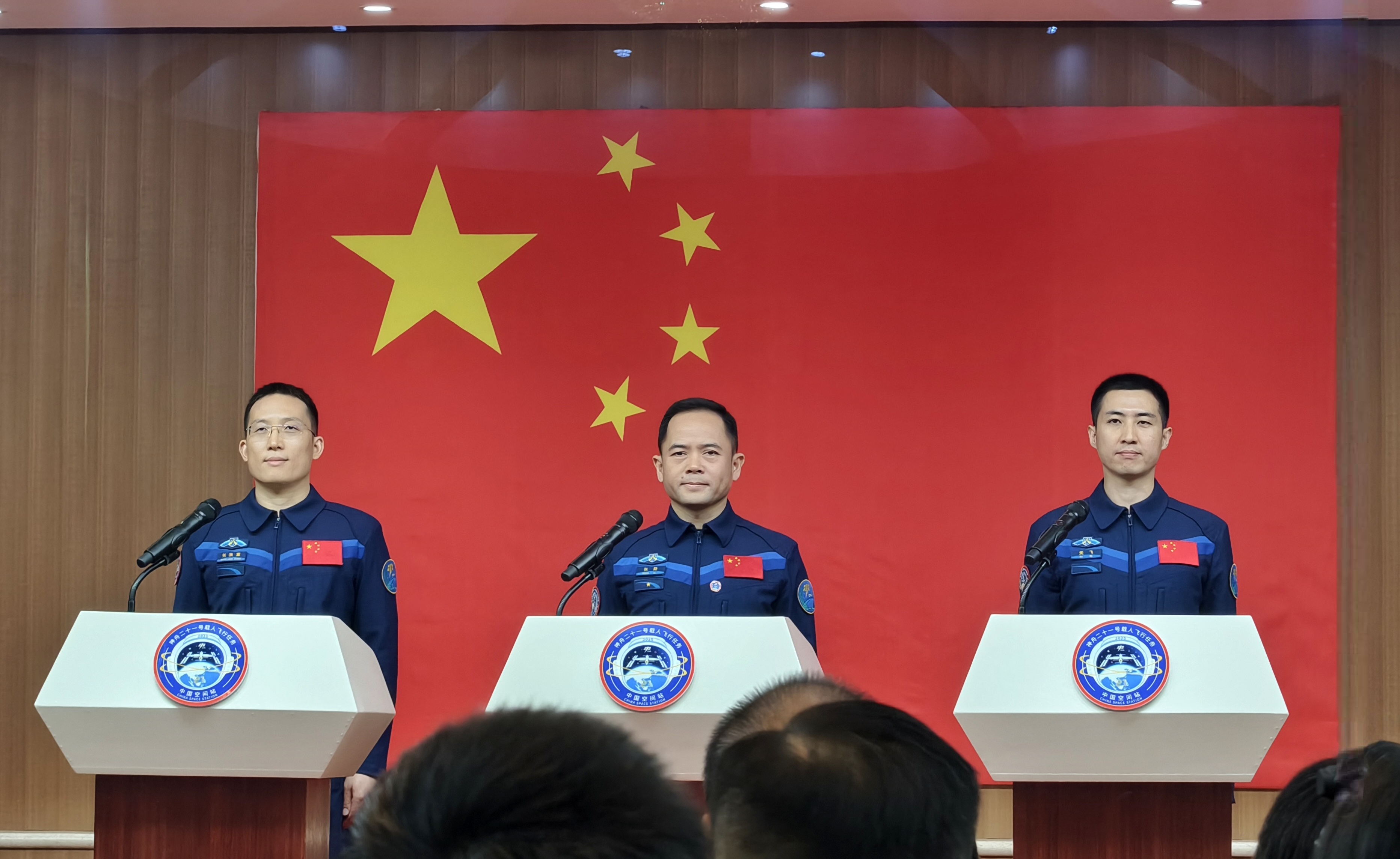神舟二十一号航天员和机组人员在酒泉卫星发射中心问天阁与中外媒体记者集体见面。图片来源:人民网记者 米媛 人民网北京10月30日电(米媛、赵竹青)据中国载人航天工程局消息,经空间站应用发展阶段飞行任务指挥部调查决定,神舟二十一号载人飞船发射定于北京时间10月31日23时44分进行。航天员组将由三名航天员组成:航天飞行员张鹭、航天飞行工程师吴飞和有效载荷专家张宏章,张鹭担任指挥官。 10月30日上午,三名航天员在酒泉卫星发射中心文体馆会见了中外媒体记者。神舟二十一号航天员和机组人员与中外记者举行集体会议外媒在酒泉卫星发射中心问天阁。人民网记者 米媛 供图